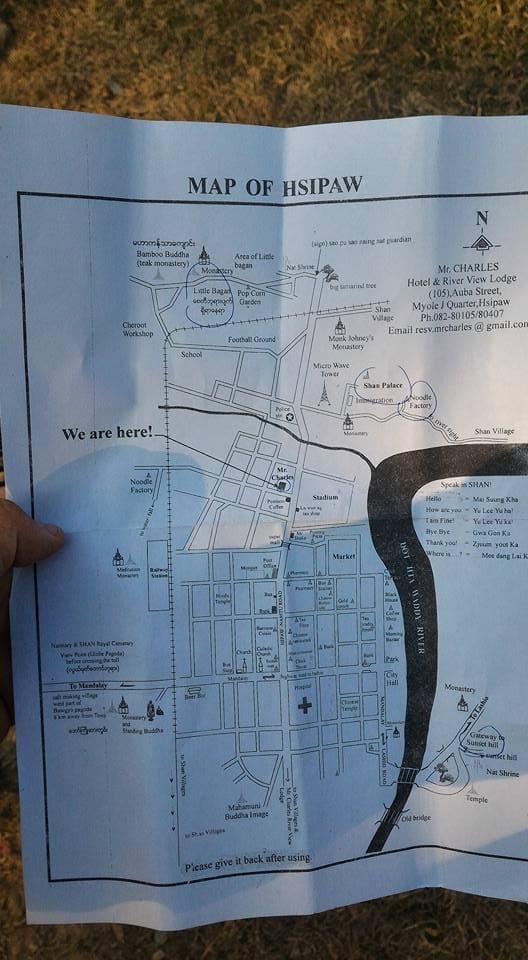 Hsipaw is small city, and there is some view points in there. You can sightsiing after arriving. And I have heard that there is a trekking tour in Hsipaw, 1 day? or 2 day? trekking tour. But I am sorry, I haven’t been to the trekking tour, so I don’t know indetail.